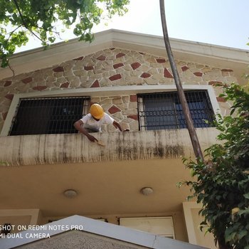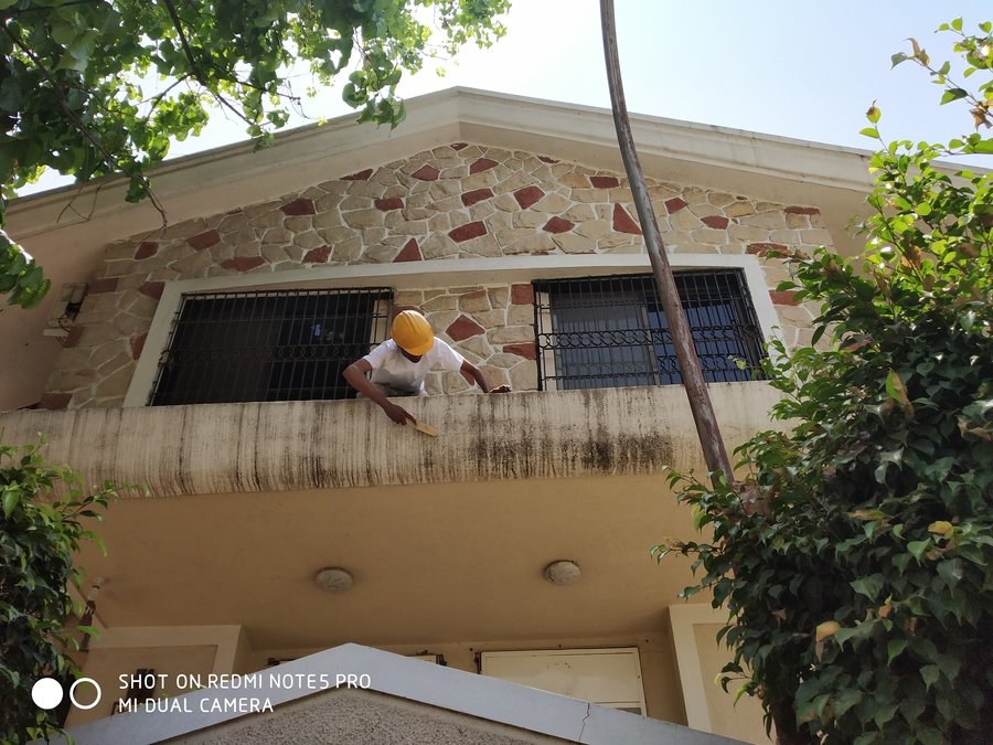 - Washing of the exterior surface with pressure wash to free it from dirt/ dust and loose old paint film.
